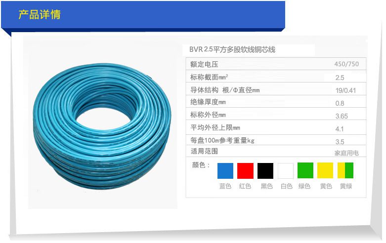 漢河電纜電線 BVR2.5 多股銅芯線軟線 200M每盤 2020-08-10 本文被閱讀 次